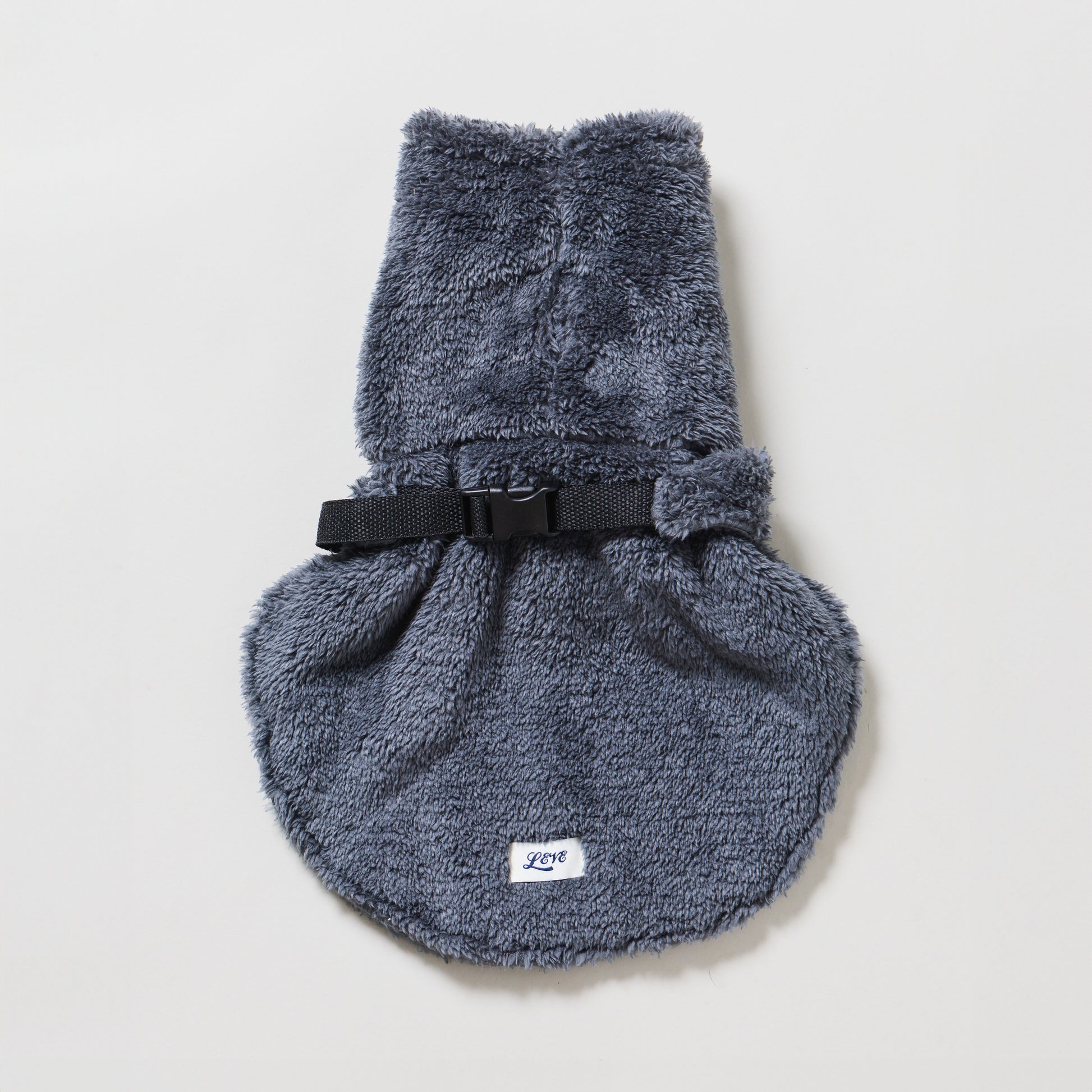 ボリューム満点の毛足が特徴のシャギーボア素材を使用しています。首元までたっぷりボアでしっかり暖かく、軽くて動きやすいのがポイント。頭から被せてお腹側からベルトを回し留めるだけの着脱ストレスフリーなデザインです◎