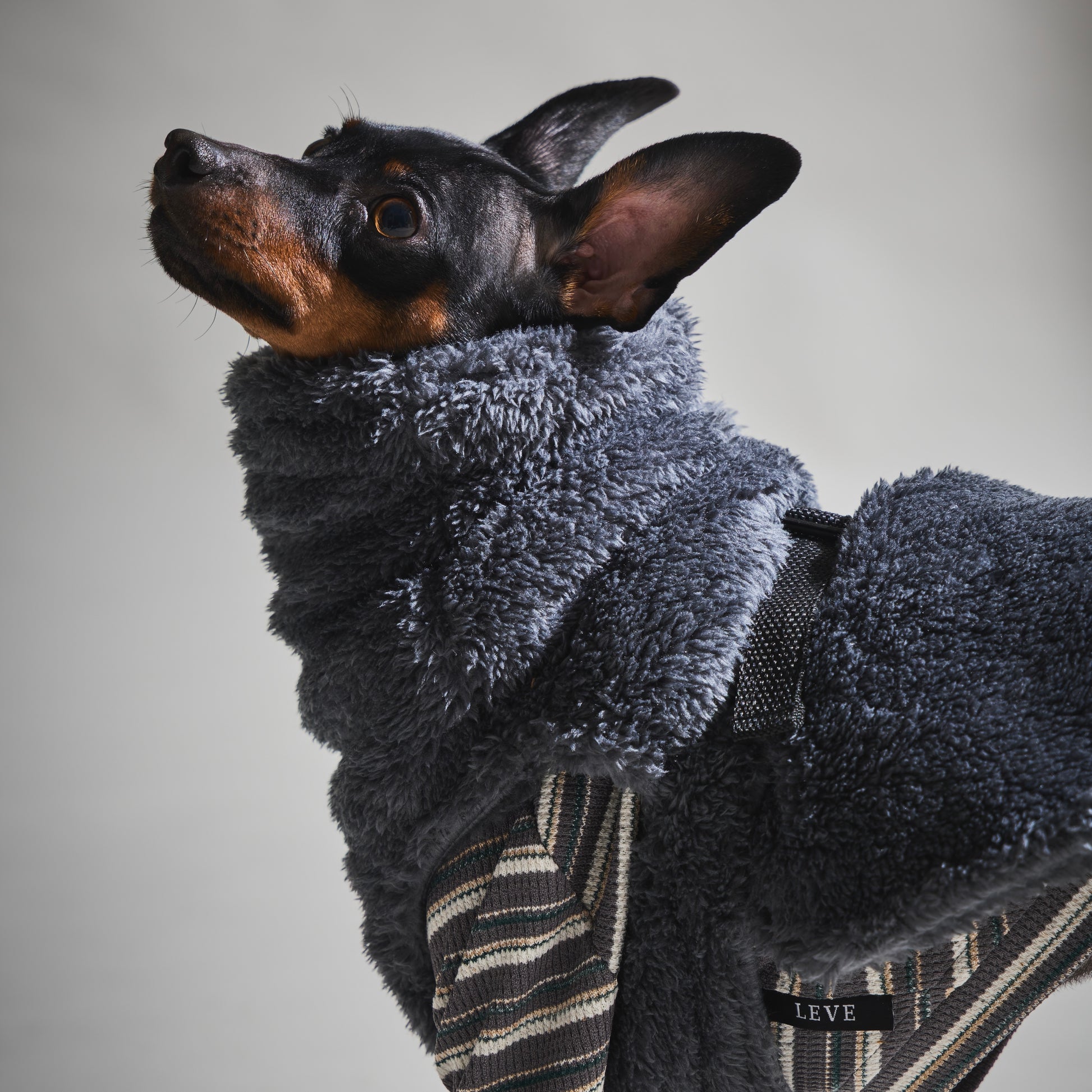 トップスやロンパースと合わせやすい色なので、お手持ちの洋服にプラスすることで着こなしの幅が広がるアイテムです。リードホールをつけており首輪の上から着用いただけます。寒い日にアウターとして活躍する一枚。